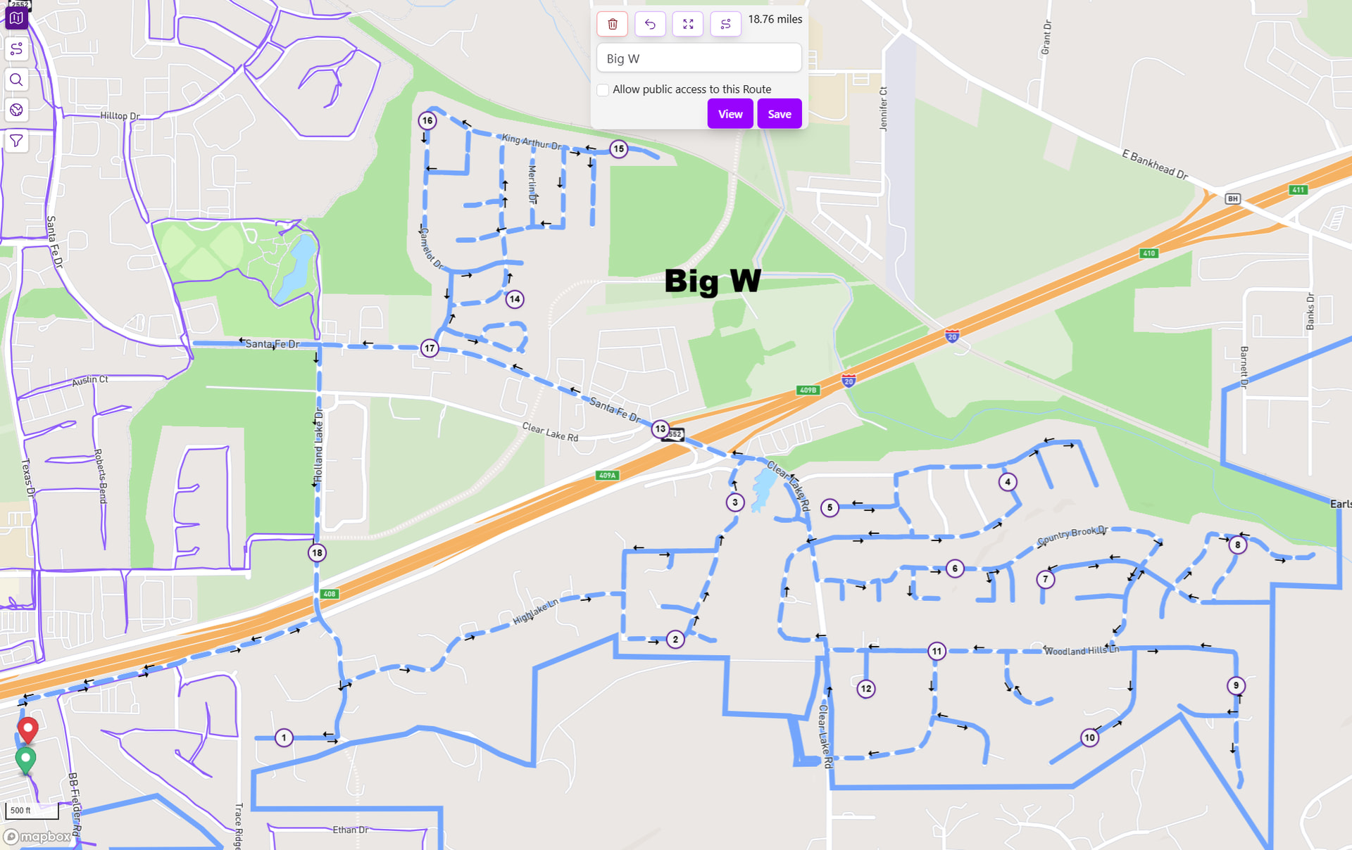 As I was finishing up the route, I realized I was close to marathon distance. I was only able to run the early portions of the route, but decided to keep on striding. You can see all my laps in the shopping center where I parked.