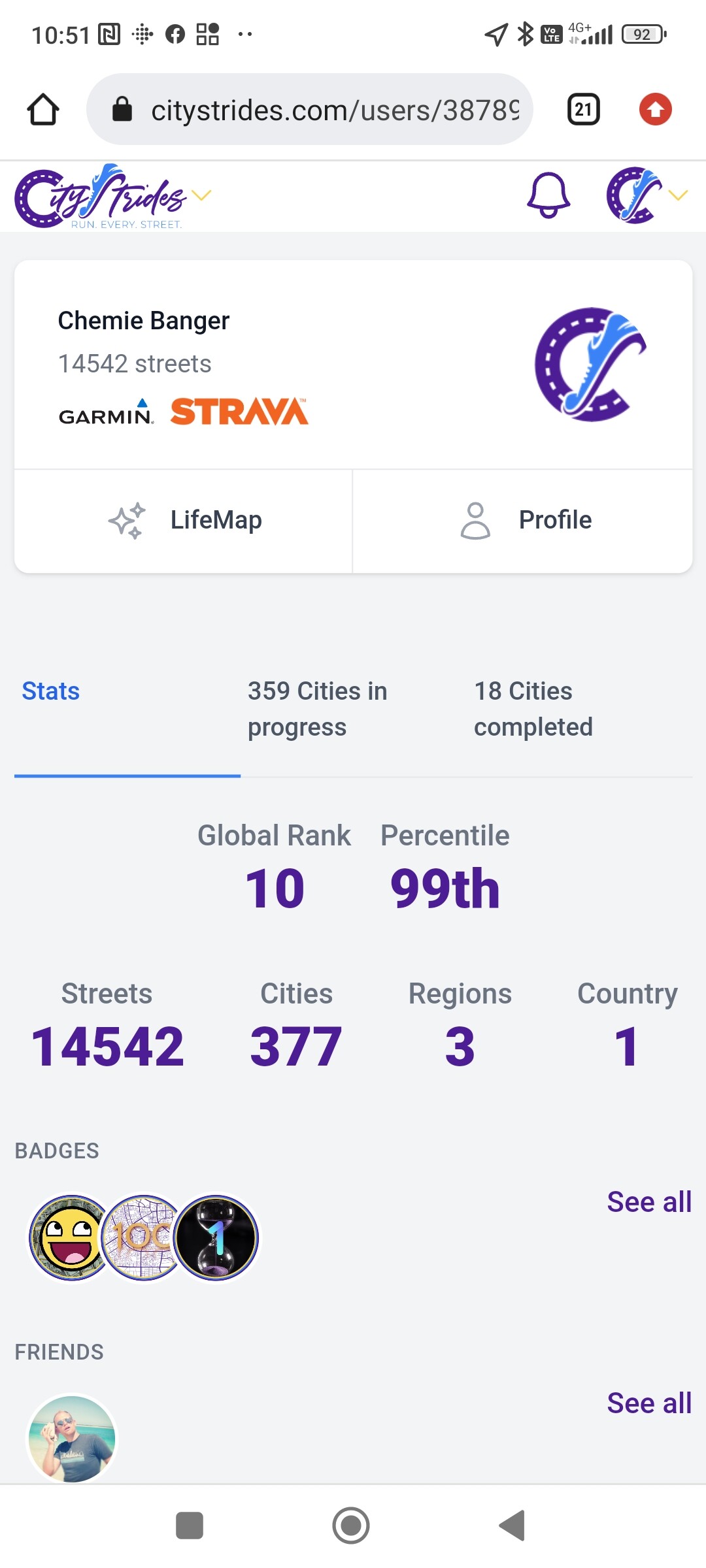 I can appreciate that and thank you for the info. But I don’t use RunKeeper and I also most of this is fleeting anyway. Watching my % vacillate between 80-97% of Minneapolisin the past few days has been annoying