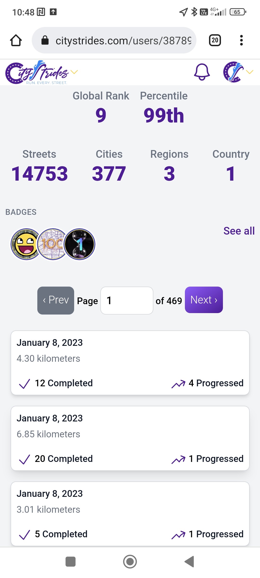 I don’t know whether it helps to have more links, but here’s my profile and the three cities that I used to be 100% on.