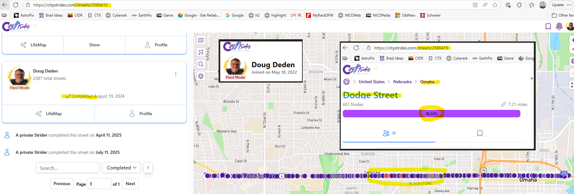 I’ve been on Hard Mode for a few years now. A few weeks ago, I saw a sudden jump in my Completed Streets count in Omaha, Nebraska, and it appears that I’m now getting completion credit for streets above 90%.