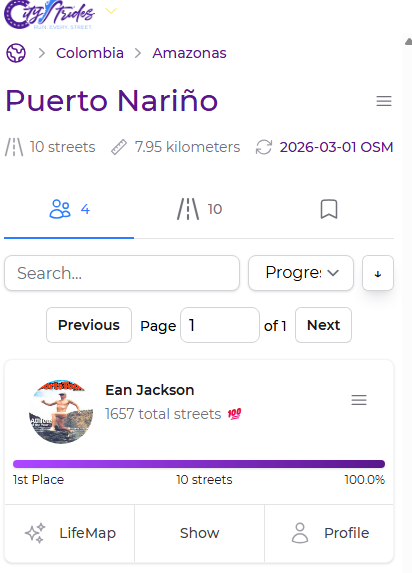 I’m so darned close to getting 100% of the streets in Puerto Narino in the Amazon region of Colombia… but faced with an impossible conundrum. The Amazon River is on top of two nodes!