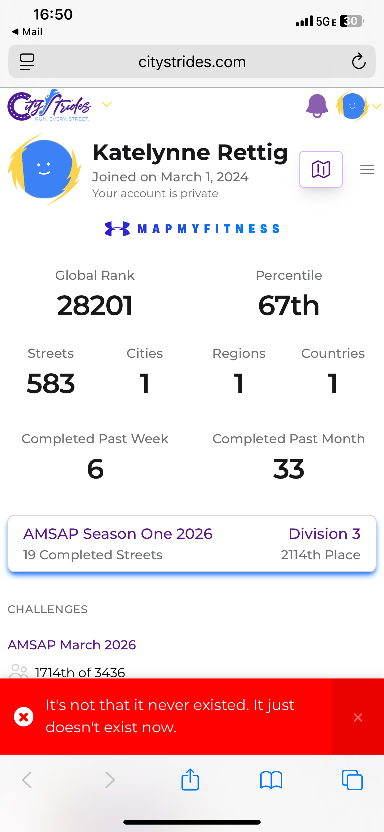 Also, the data hasn’t “vanished”, you still have all your runs. When the processing issues and classification of [nested] cities get cleared up, and your streets will return. In the meantime, it doesn’t affect your running or walking…just try to be patient and remember there’s one guy on the other side keeping this thing working as more and more people sign up and place load on the infrastructure.