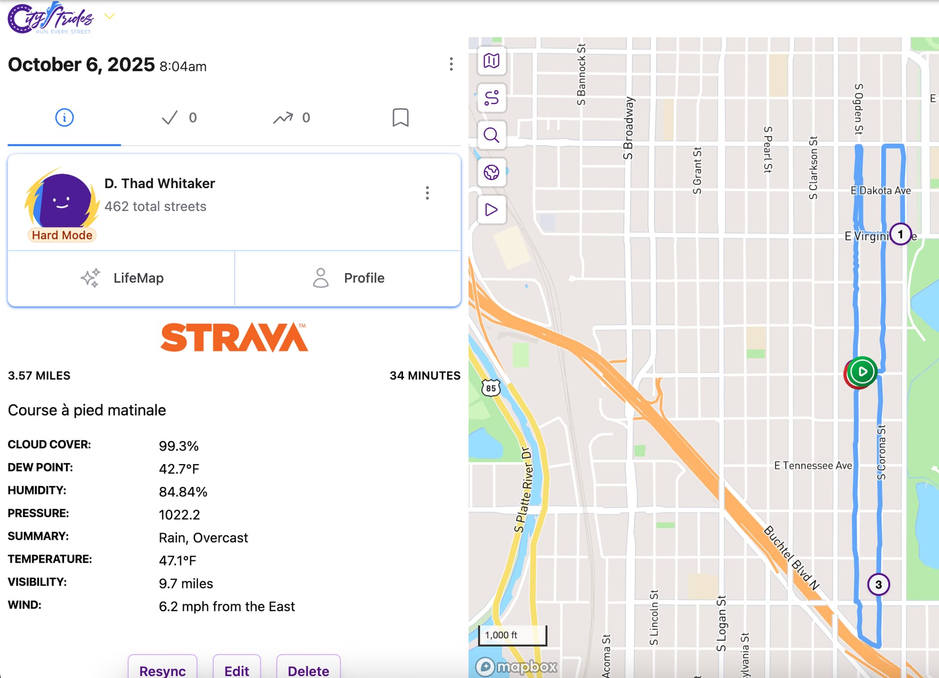 I have a run from October 6 that shows 0 streets progressed and 0 streets completed (with new streets). I use Strava and have tried to re-sync on multiple occasions, and more recent runs are recorded accurately. Please help ![]()