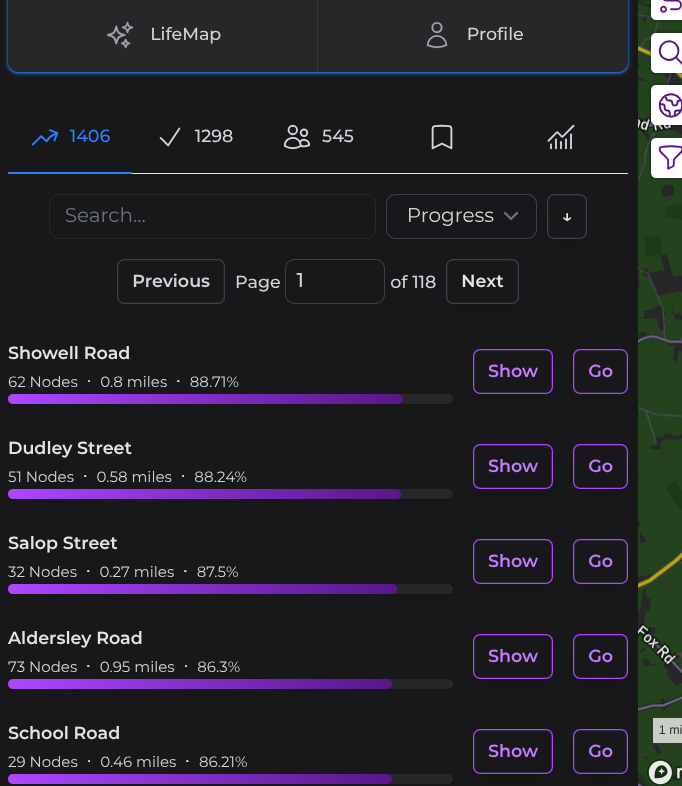 Your post made me think of an additional enhancement request: “use a different color to highlight nodes where all nodes to complete a street are currently visible” Cities like Chicago continue the street names across the city whether or not they are contiguous. A street with three nodes nearby may have another node 5 miles away. It would also be nice to quickly see what streets nearby are easily completable without needing to drill down to individual streets.