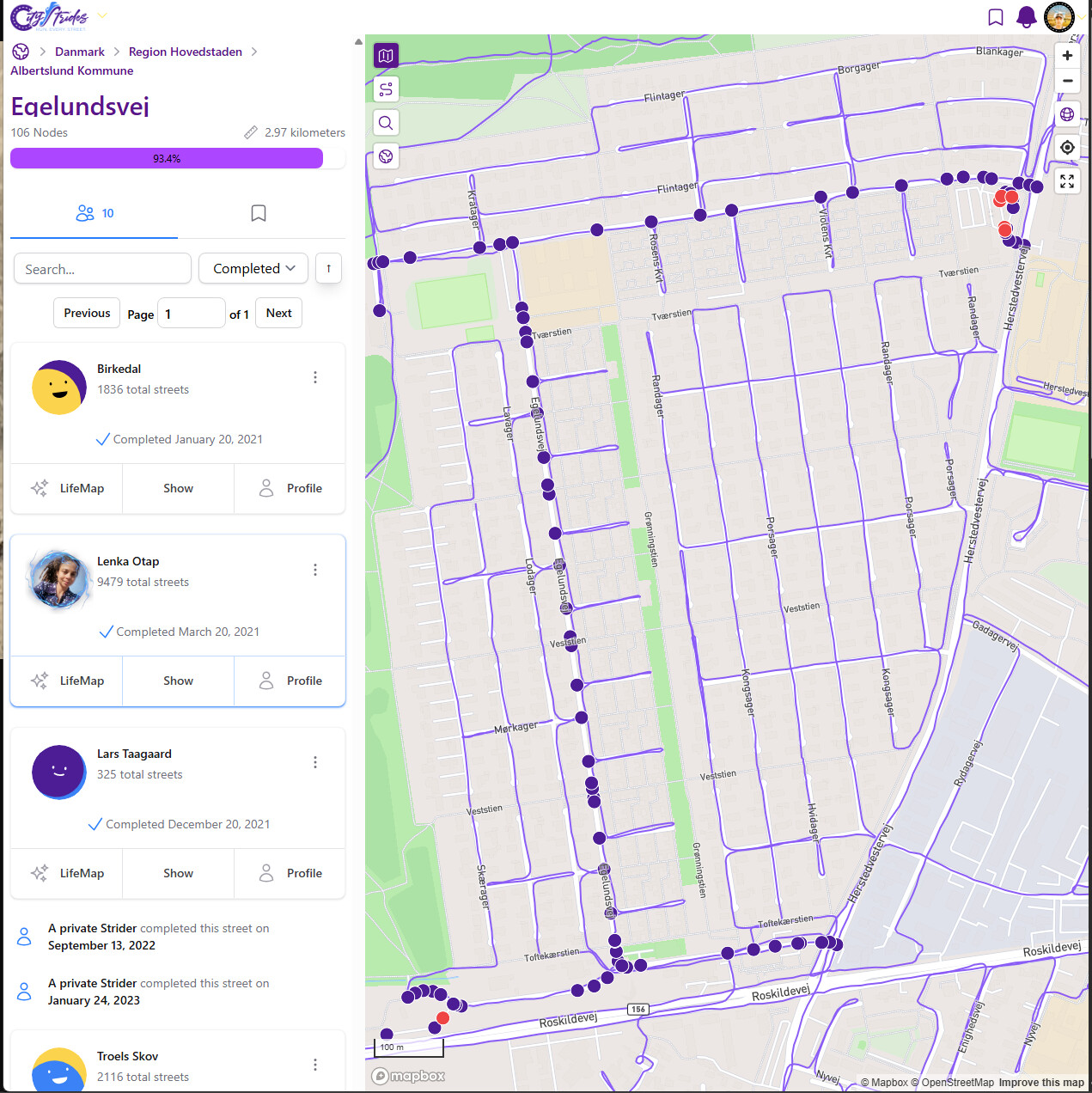 I’ve finished Albertslund Kommune, Region Hovedstaden - CityStrides but if i view each street manually i can still find the red nodes, without activating hard mode.