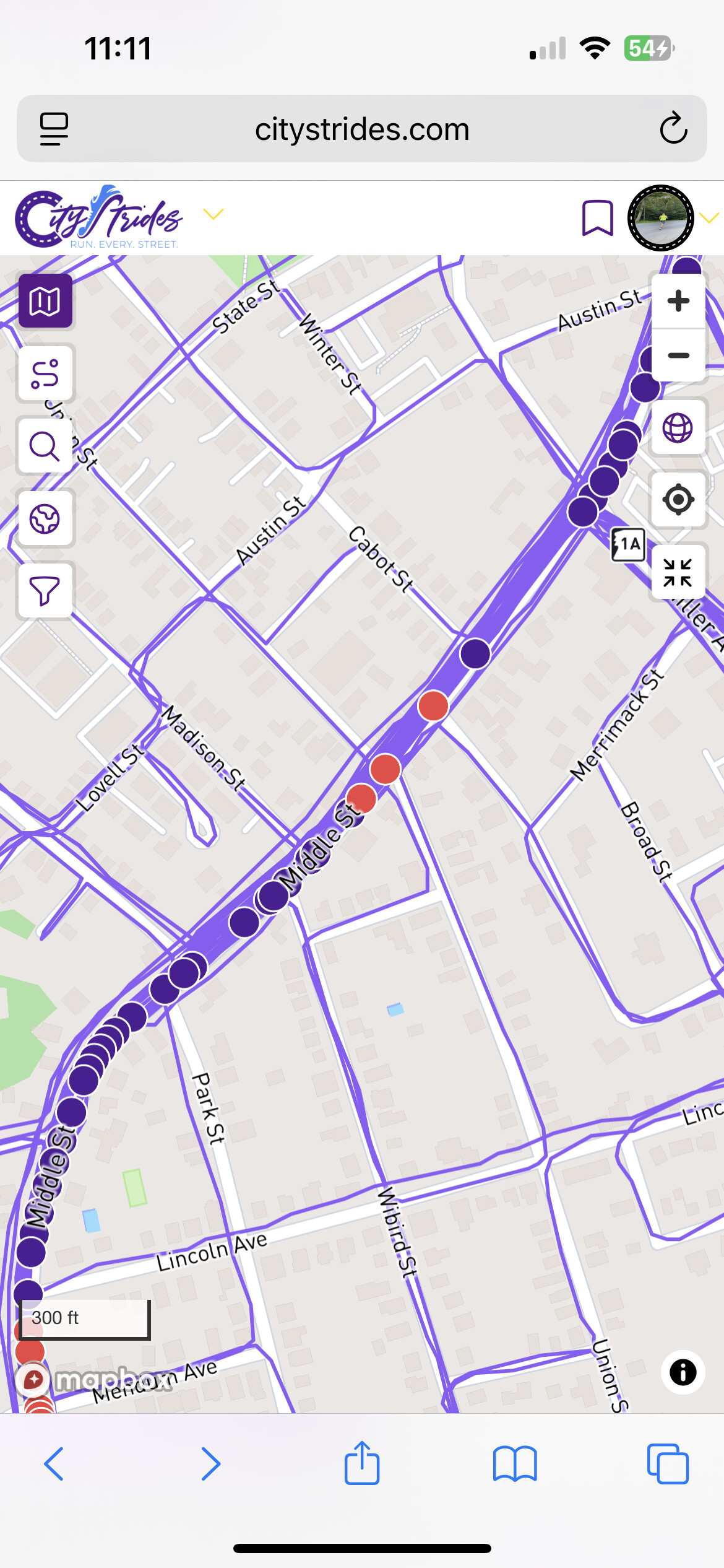 Not sure what is happening here. I looked at about half of these streets and Iāve completed at least 90% of the nodes for every one with most being 100% but there are red nodes on previously run areas. Example shown is Middle Street.