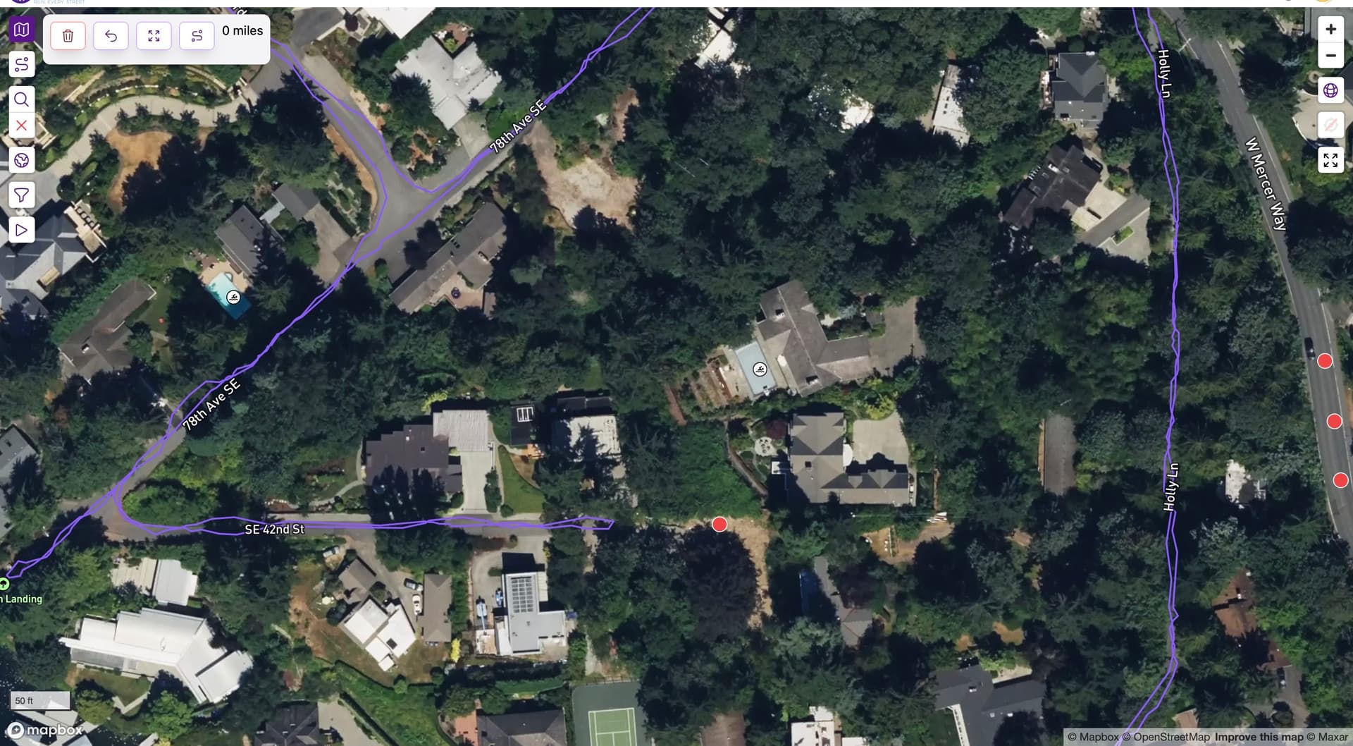 At the southernmost portion of this route there is a node on the right hand side of SE 42nd street that is unachievable because it is on private property. It is behind a homeowner’s gate to his driveway. Moving the node to left a bit, closer to the water, should suffice.