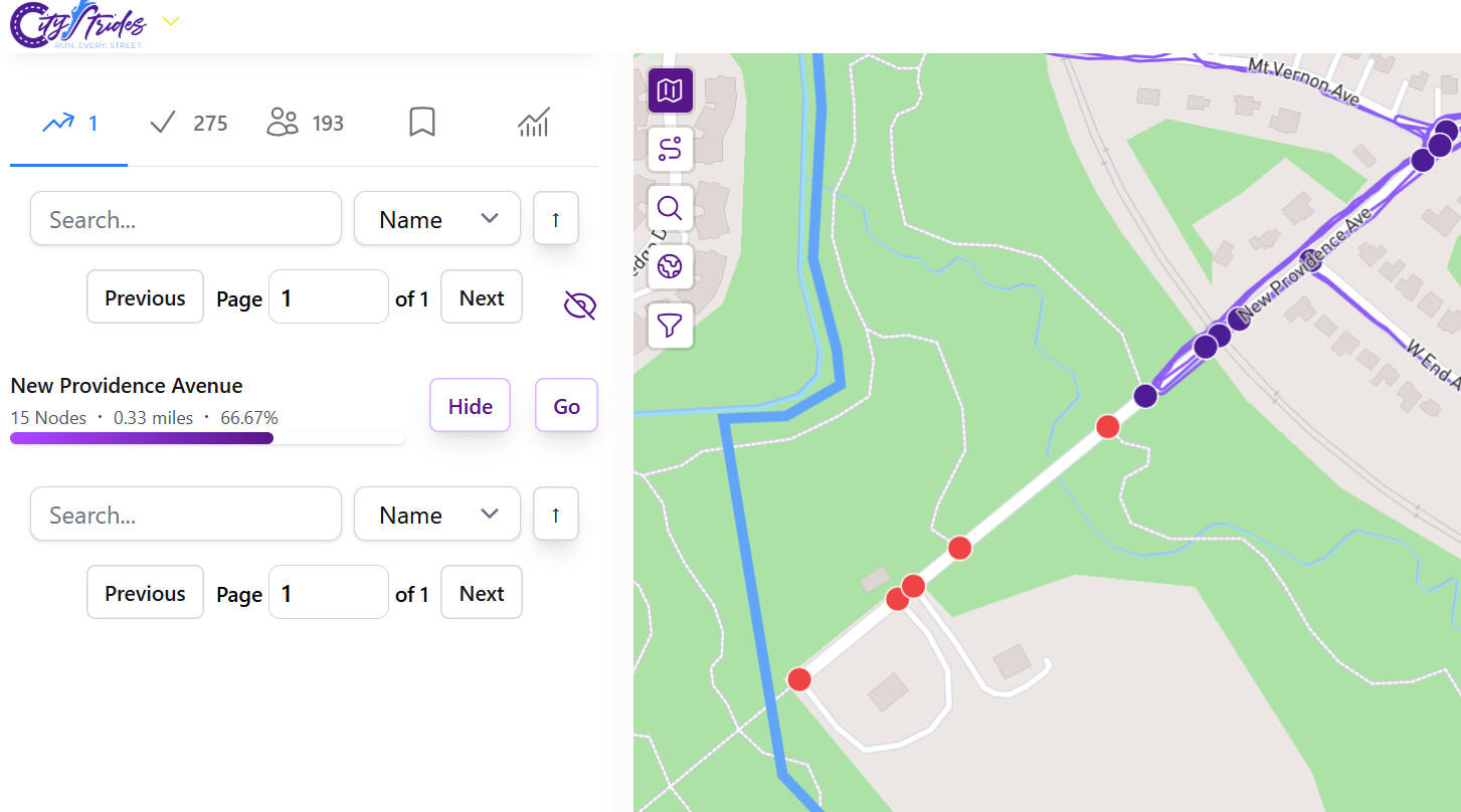 PS. Looks like your profile is marked private, as I see one Strider, missing one street, in Summit, New Jersey - CityStrides , otherwise I could have probably figured it out.
