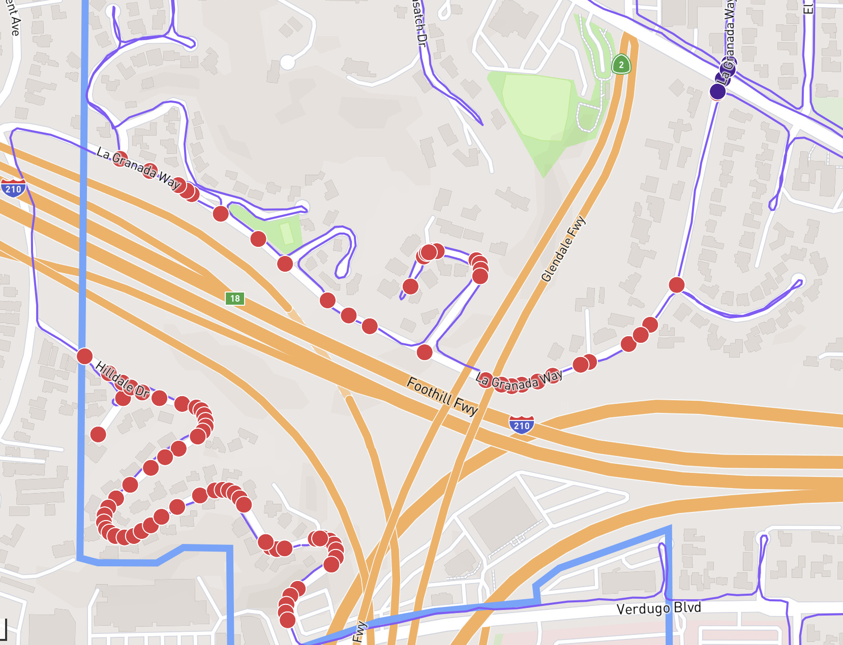 Just went on a run and noticed nodes not syncing with map. This is in the Pasadena region of Los Angeles. Below is the image. Hoping just a bug in the system. Thanks again for the help!