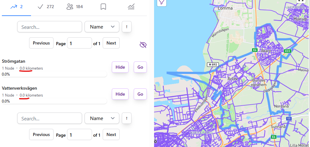 There were some updates to the map of Burlövs Kommun in SkĂ„ne Region, Sweden. Some two âstubborn streetsâ, each with one node, and 0 distance popped up on the map, and unfortunately not completed in my case. These ghost nodes do not show on the map, even when I