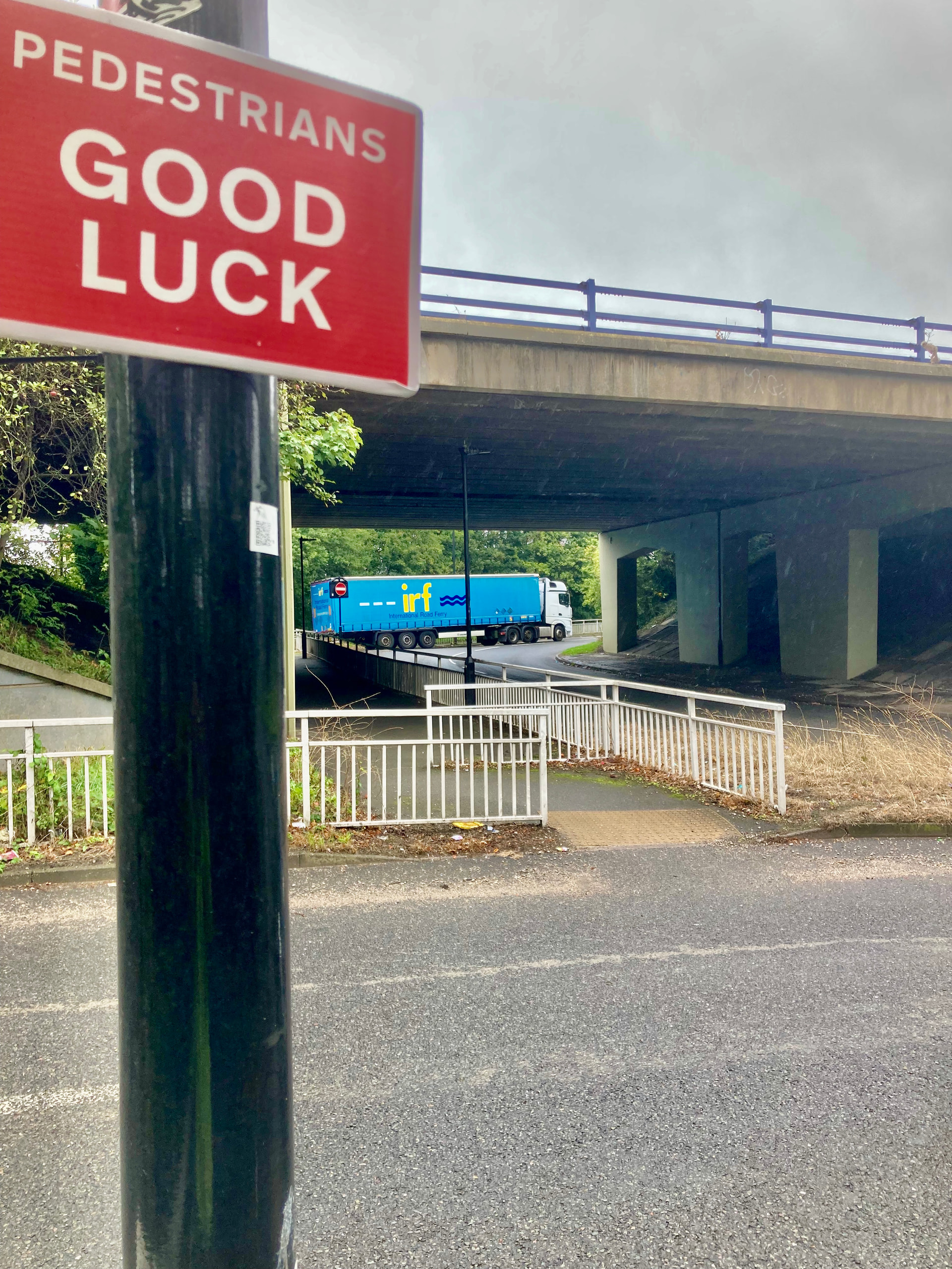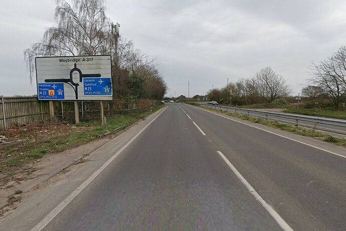 Bit of an issue however as these are rural 70 mph dual carriageways with no sidewalks and running/walking alongside them whilst technically “possible” I would say is ill advised and not in the spirit of what we are trying to do here.